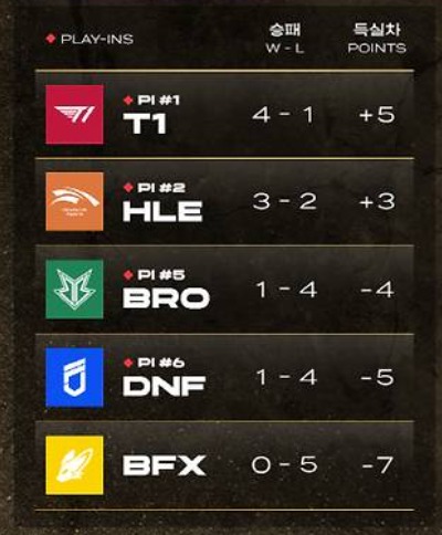 마무리되었습니다. 먼저 승리한 장로팀 3팀을 제외한 장로팀 하위 2팀(DRX, NS) , 바론팀 중 최하위를 기록한 BFX를 제외한 나머지 4개 팀(T1, HLE, DNF, BRO)이 벌이는 플레이 인 스테이지에 대해 알아보겠습니다.